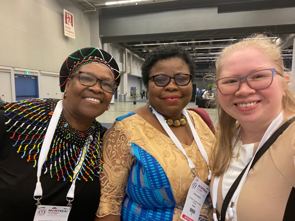 The International Council of Nurses (ICN, n.d.), a federation of more than 130 national nurses associations, hosted this year’s Congress in Montreal, Canada with an attendance of about 6,000 nurses from all over the world (ICN, 2023). Our Mothering and Albinism team presented our important research work on albinism and human rights through a presentation and three e-posters. Our South African and Ghanaian team members, Shirley Mooa, Lydia Aziato and Victoria Nesengani joined our Canadian team (Sheryl Reimer-Kirkham, Barbara Astle, Kendra Rieger, and Meghann Buyco) to highlight the experiences of mothers of children with albinism, persons with albinism, and siblings of persons with albinism.