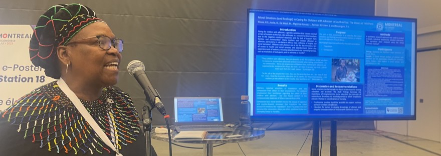 Shirley Mooa discussed the moral emotions and feelings of mothers who have children with albinism in South Africa, emphasizing two themes of trepidation and compassion. She foregrounded the need to support mothers through psychosocial services and to educate nurses about albinism.